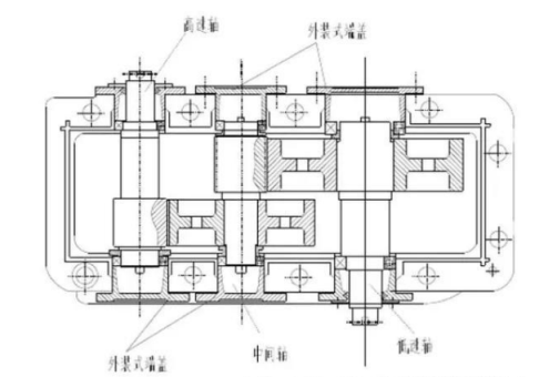 在减速机轴系固定方法一般选用轴系两头固定和轴系一端固定,一端游动两种方法。而两头固定方法一般又选用轴承端盖外装式及轴承端盖嵌入式两种。