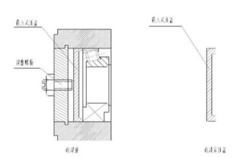 值得注意的是与调整螺栓配套的嵌入压盖(如图2),与轴承外圈触摸的部分,有的减速机上该压盖触摸面过少,经常导致磨损敏捷,大大缩短了轴承空隙调整周期,解决的办法是:增加内压盖与轴承外圈的触摸面积(从头制造加工,加宽内压盖的轴承外圈压边),也能有用的延伸轴承空隙的调整周期,避免轴承的损坏。