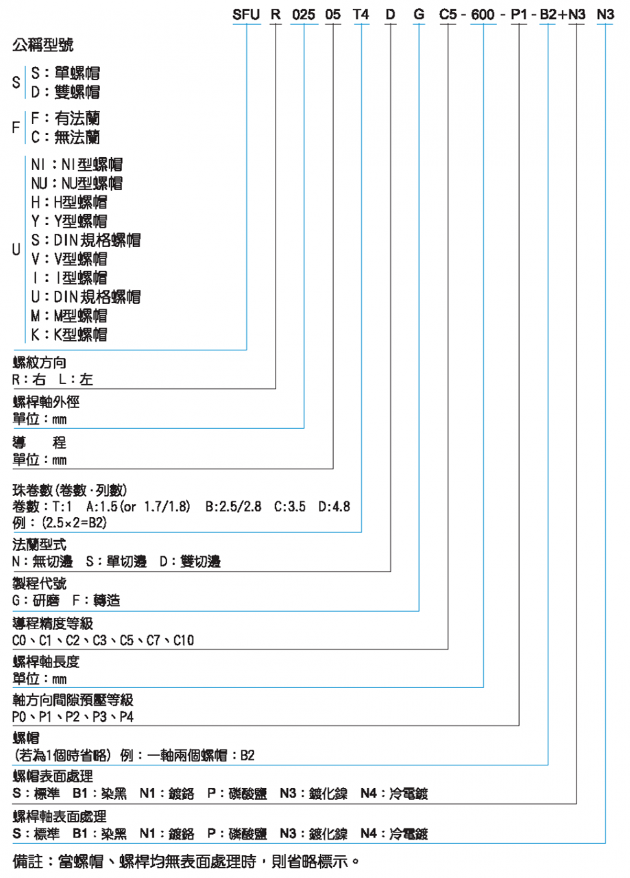 滚珠丝杠的型号中数字前面的字母一般是厂家自行定义的,目的就是为了将各种各样的用途不同的产品系列区分开来,内循环、端塞型、外循环、高导程、高负载、端塞型高负荷、端盖型、小珠径、标准型等等系列,这些字母后面紧跟着的就是丝杠的大小、导程、精度等的参数。