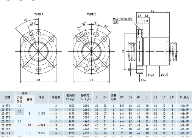 计算出丝杠的轴向负载以后,选型会出现两个分支,一种情况是客户不知道设备的设计寿命年限,以及每一年中丝杠的使用平率,不做精确的丝杠寿命校核。那么我们推荐一种简单可行的方法,就是查询丝杠资料中的动负荷值C。结合第7项精度0.1mm的要求,我们推荐常备FSI螺帽形式的丝杠,尺寸参数表如下: