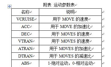 为了使机器人在运动完成后能精确的到达目标点,就必须给定一个运行速度,其运行速度可进行手动调节也可在程序中进行控制,在程序中需在指令参数中配置VTRAN参数,运动参数如附表所示。