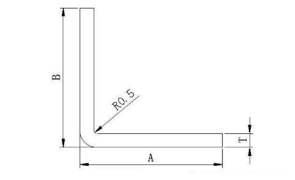 当折弯半径为R=0.5时,一般的钣金厚度T就等于0.5mm。如果需要大于或小于板厚的半径尺寸,需要用专用模具加工。