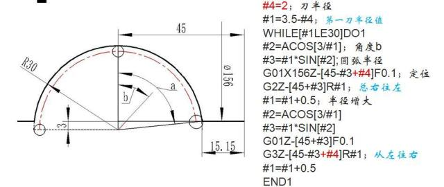 最后,以一个凹圆弧为例,采用宏的思路编写两个程序可供参考!