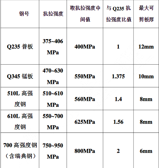 以下为剪板机剪切钢板厚度标准,一起来看看吧。