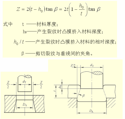 冲裁间隙Z是指冲裁模中凹模刃口横向尺寸DA与凸模刃口横向尺寸dT的差值,如图2.3.1所示。Z表示双面间隙,单面间隙用Z/2表示,如无特殊说明,冲裁间隙就是指双面间隙。Z值可为正,也可为负,但在普通冲裁中,均为正值。