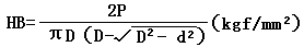 布氏硬度值以试样或工件上钢球压痕球面上的平均压力(kgf/mm)表示之,并按下式计算: