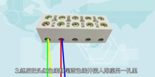 3.把头红色线和尾蓝色线并接入排座另一孔里。