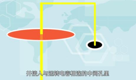 5.把工作电容接入电路,即电容的一根线的和电源线并接入一孔,电容的另一根线接入排座的中间孔里,这样就组成了单相电动机工作所需的2个绕组。
