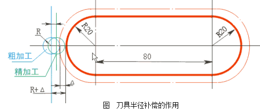 进刀段、退刀段通常沿轮廓的切线方向。通常在此建立或取消刀具半径补偿,因此,可把此段设为直线或直线加圆弧。