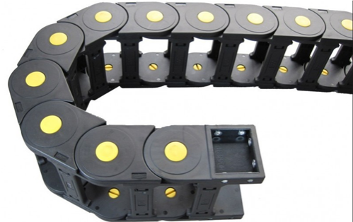 一、拖链内如何放置:电缆、油管、气管、水管;等机床配套设施、内腔应留有百分之十到百分之十五的活动空间让内置的电缆、油管、气管等可以自由活动;在弯曲半径中对拖链不会产生强摩擦拉力,保证能够充分的保护电缆、油管或气管。