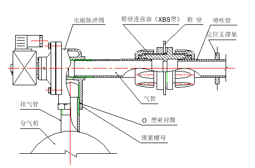 五、电磁脉冲阀与箱壁连接器、喷吹管和分气箱安装选用说明