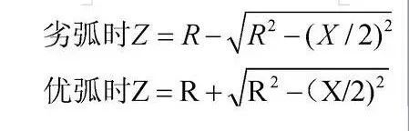 2、当截面为优弧时。球冠高度=R+【R2-(X/2)2)】的方差的平方根