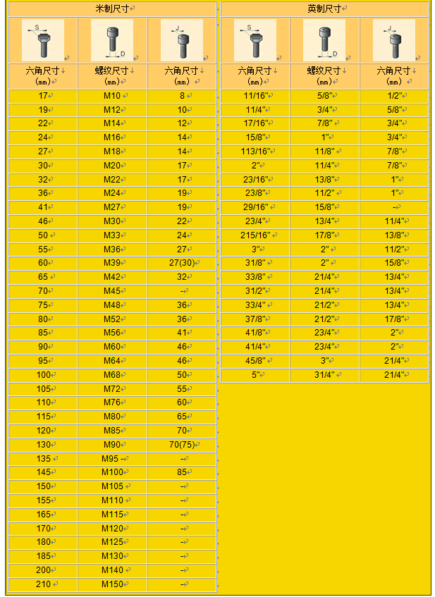 英制六角螺母规格表【免下载】