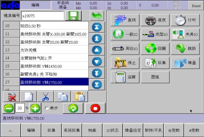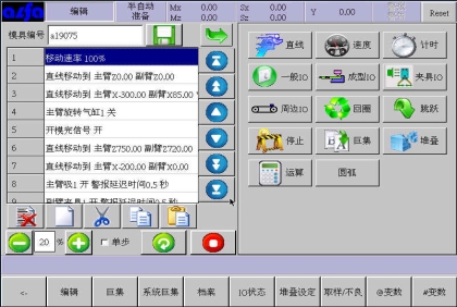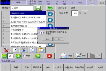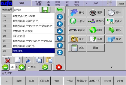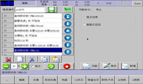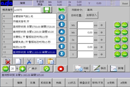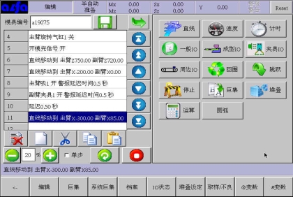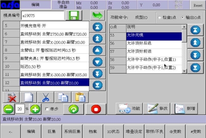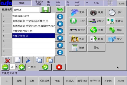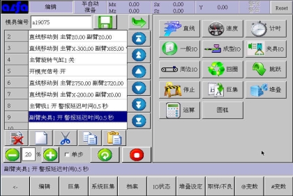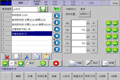 。在此画面中可以根据模具产品功能需要,编辑各式程序。下面进入正式教导阶段: