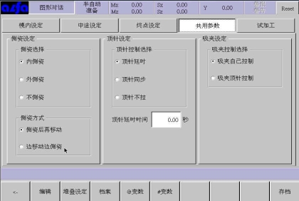 轴操作有两种方式,第一、直接通过数字键盘输入各轴位置;第二、通过右边各轴寸动键操作到所需位置,按左边“MX”等一个键把当前位置设到对画框内。如果要全部设入,按