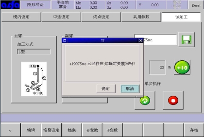 ,若档案中存在与刚输入的模具编号一样的程序,会弹出如下对话框,提示是否将原来同名的程序覆盖,若没有同名的程序存在就会直接保存。