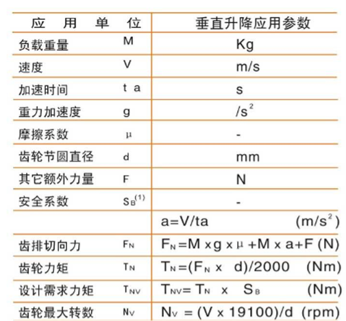 根据经验与应用方式来考虑安全系数,选择合适的齿轮,上表的顺序计算出设计需求力矩(Tnv)。