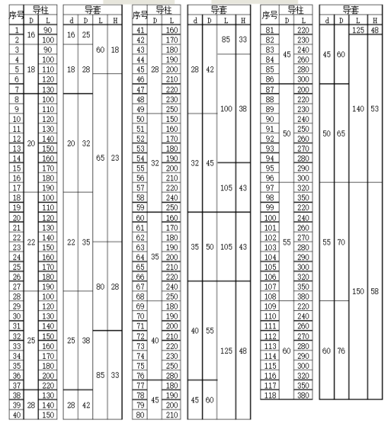 导柱尺寸规格表【大全】