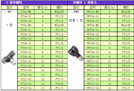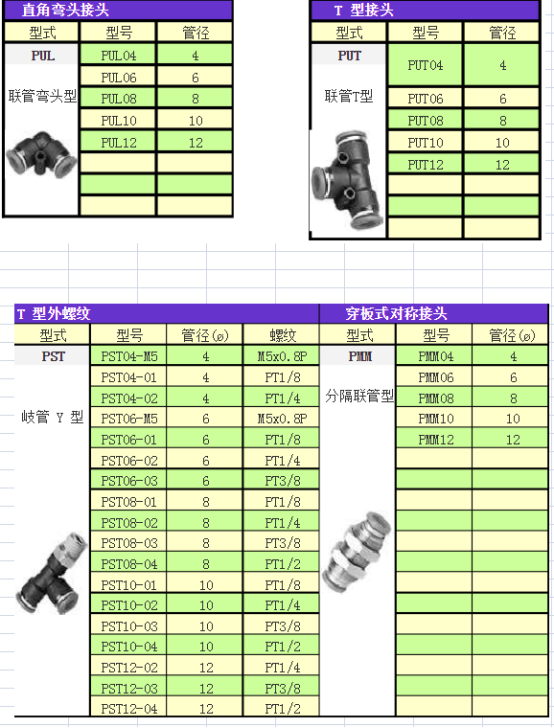 气管快速接头规格型号大全-气管快速接头规格型号对照表