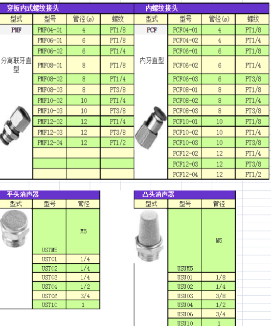 气管快速接头规格型号对照表【大全】