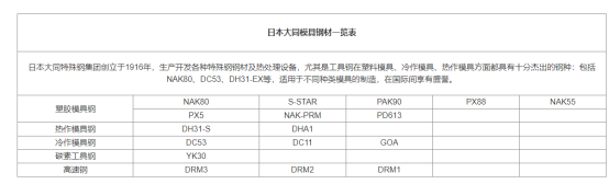 NAK80 大同模具钢 品牌 大同 原产地 日本 产品简介