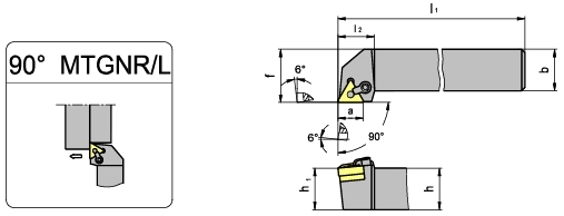 型 号 | b | h | h1 | f | l2 | l1 | 刀尖半径 | 配用刀片 | 螺钉 | 扳 手 | ||||||||||||||||||||||||||||||||||||||||||||||||