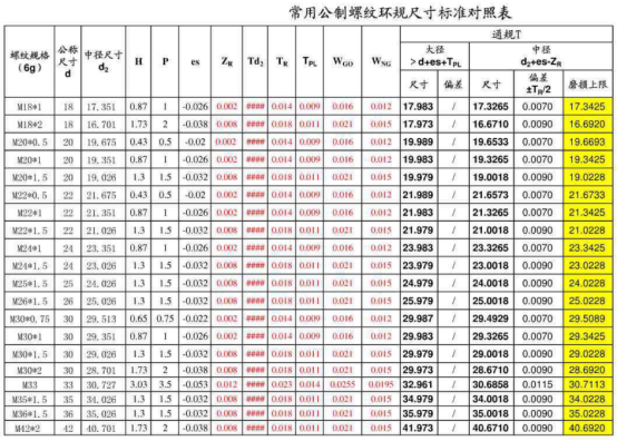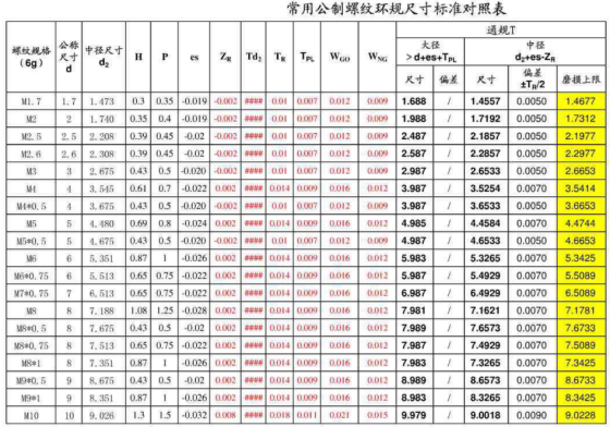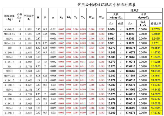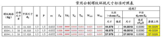 螺纹量规尺寸标准对照表【免下载】