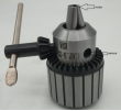 钻夹头夹持铣刀,机床附件生产制造企业用钻夹头来夹持铣刀钻头。实现快速换刀,缺点是钻夹头精度比er筒夹精度差,一般在10丝左右,要求不是特别高的话可以使用钻夹头的。