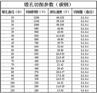 镗孔切削参数【一览表】