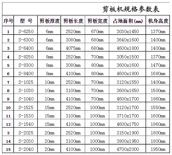 剪板机规格型号参数【免费下载】