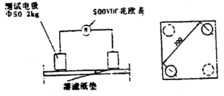 按图9所示方法测试其工作台、台面(台垫)的表面电阻,使其符合附录C表中的规定要求。