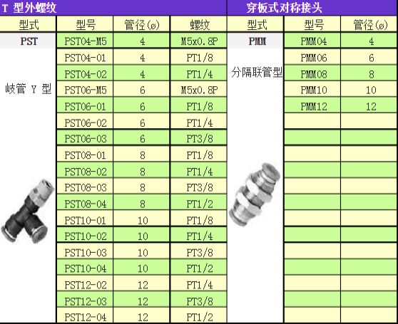 PST系列:04M5 PST04M6 PST0401 PST0402 PST0403 PST06M5 PST06M6 PST0601 PST0602 PST0603 PST0801 PST0802 PST0803 PST0804 PST1001 PST1002 PST1003 PST1004 PST1201 PST1202 PST1203 PST1204 PST1604