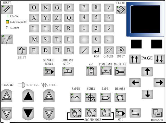 | 负Z轴移动键 | Z轴负方向移动进给 |