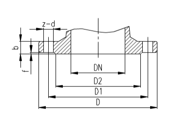 法兰规格 DN | 法兰内径 | 法兰外径 D | 孔数 z | 孔距 D1 | 孔径 d | 螺栓尺寸 | 法兰厚度 b | |