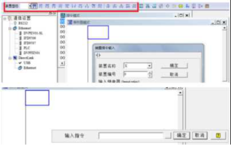 4.可以在工具栏中找到相应的输入、输出的符号,点击就可以添加到程序窗口中,也可以双击蓝色方块,就可以以指令模式输入程序,如下图所示: