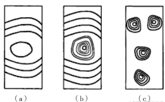 (3) 当平面平晶与量块接触面之间出现的干涉条纹如图1 (c) 所示时 (一般5mm一下量块出现此种情况) , 说明此量块已经变形。
