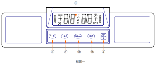 4、 按校准按钮③,电子倾角仪可进入校准状态。(详见“四、倾角仪的校准)