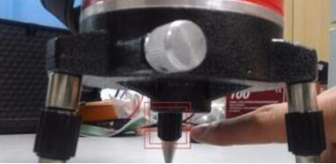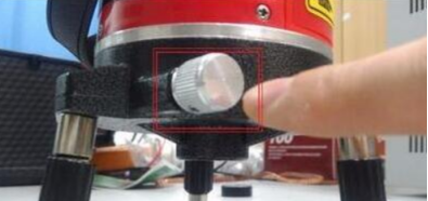我们可以通过旋转投影仪下方的水平螺杆(图1红框),达到微调竖直激光线的水平位置的作用。这样做就可以在现实应用时,在水平情况下,在墙体上或其他位置画上一条条相互水平的竖直线。对竖直线的水平位置粗调方式是直接旋转投线仪上端壳体即可。