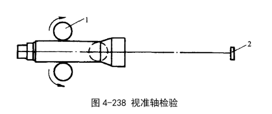 检验:将仪器安平,使望远镜十字丝交点对准远方一点目标,旋紧度盘制动螺旋(如为游标经纬仪,则旋紧游标盘及度盘制动螺旋),然后旋转望远镜微动螺旋,使其上下微动,若该点始终都在竖丝上移动,则表示条件满足。如果偏离竖丝(图4-229),说明竖丝不垂直于横轴。