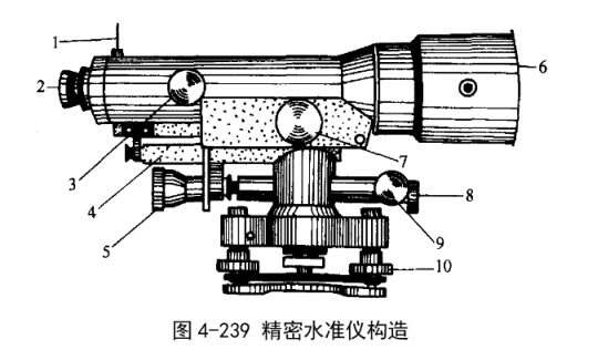 精密水准仪的特征:(1)望远镜有较大的放大率,约36~50倍。望远镜品质甚高,有很好的清晰度、光明度,一切色差变形消除殆尽;(2)水平管的灵敏度极高,约自2'/2mm~6'/2mm之间。近代观察水泡像的方法多采用棱镜折影符合法,符合观察之精度为水平管灵敏度的1/4,例如水准管的灵敏度4'/2mm,则用符合法之后,观测精度可达0.1'。因此,现今精密的水准仪上水准管的灵敏度绝对值不需过高,而仍能达到非常精密的安平效果。