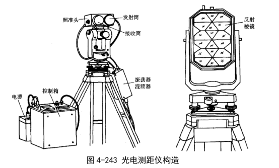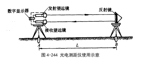 为了测量A、B两点之间的距离,在A点安置光电测距仪主机,在B点安置反光棱镜,如图4-244所示。