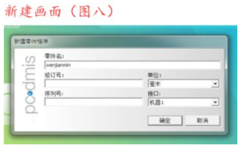 4)进入软件界面后,点文件新建(图八)输入零件名称,点击确认,进入测量界面(图九),开始测量.