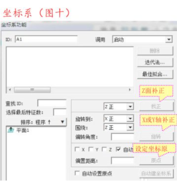 1)用以上取的面、线、点按键盘Ctrl+A/t+A键,出现(图十)依次补正面、线、点,在工件上建立新坐标系.