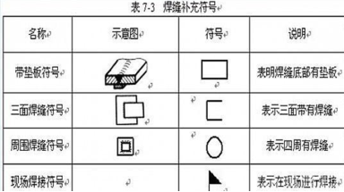 3、补充符号,如下图所示,用来表示焊接的范围等特征符号。