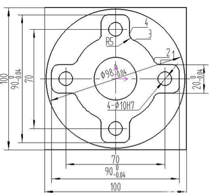 说的这里,可能有的人会说,这个还不如用G81方便呢!其实我只是把这个思路进行一个讲解,如果你是对这四个孔进行扩孔加工(除中间孔外),是不是就比较方便了呢?想想是不是?