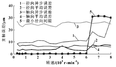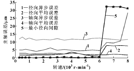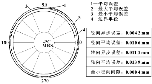 在测量轴向和径向误差时分别测量异步误差和平均误差。平均误差是总误差运动的平均轮廓线,主轴旋转的平均运动轨迹,与转速 “同步”,影响加工工件的圆度; 异步误差是总误差运动对于平均误差运动的偏离,是主轴旋转时随机变动的运动轨迹,影响加工工件表面的粗糙度[3]。