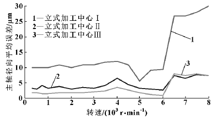 图 8 3 台加工中心主轴径向平均误差比较