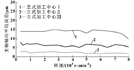 图 10 3 台加工中心主轴轴向平均误差比较