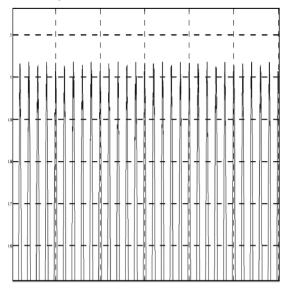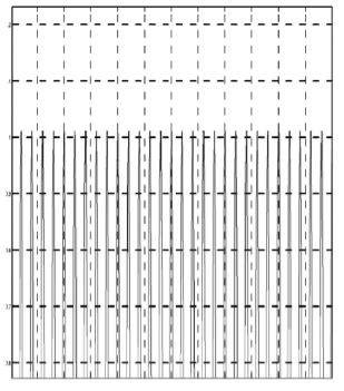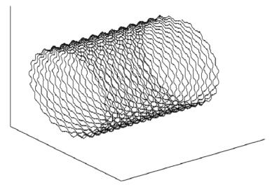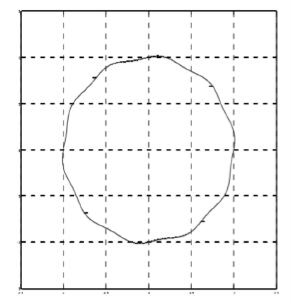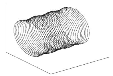 如果振动频率值正好是加工设备主要转轴的转动频率值的 10 的整倍数, 那么设备的刀尖运动轨迹会发生变化, 具体轨迹见图 8, 沿径向向的轨迹振动见图 9。 只在垂直轴线方向上加工面会产生少量变化, 相应的轨迹路径如图 10 所示。