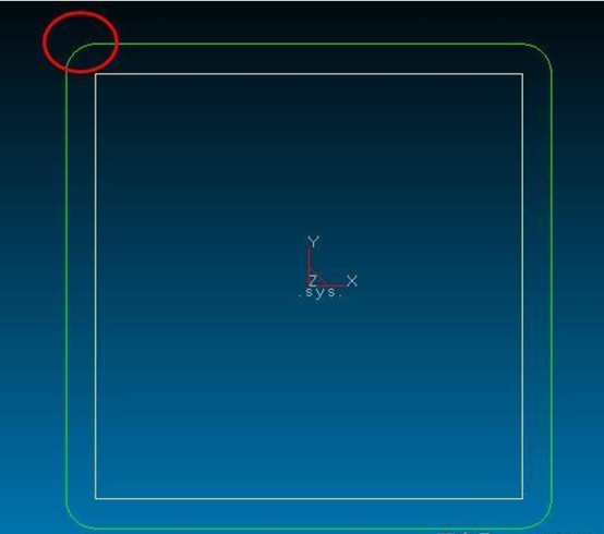 在下图中,拐角处的刀路轨迹如果是以圆弧过渡方式处理的,或者说这么种刀路轨迹在拐角处只能以圆弧过渡的方式进行处理,那么该数控系统具有B刀补!